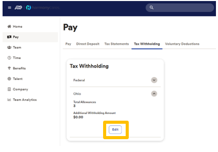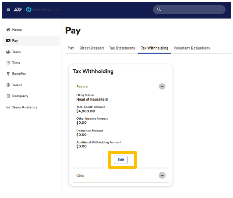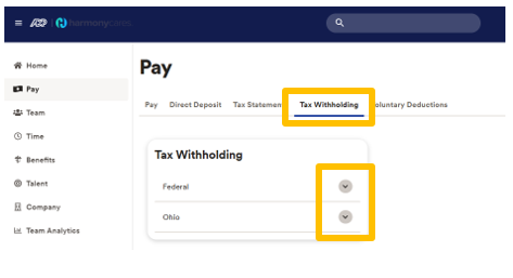 - From Tax Withholding, click arrows to expand Federal or any state-specific forms you may have.