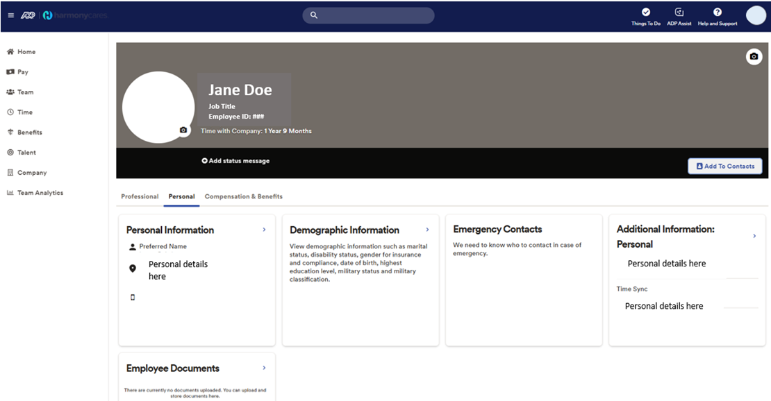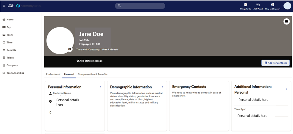 This guide outlines step action to update personal profile information in MyADP, from an Employee perspective.